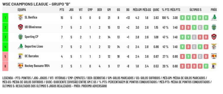 A atual fase de grupos da principal competição europeia de hóquei em patins já começa a desenhar o cenário técnico das fases eliminatórias. O momento da WSE Champions League mostra lideranças consolidadas, disputas equilibradas por vagas e equipes tradicionais ajustando o rendimento para o momento mais importante da temporada.