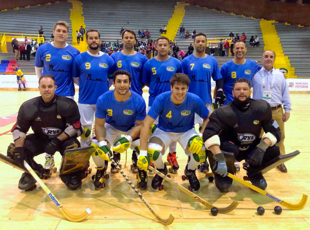 Lelo defendendo a Seleção Brasileira de Hóquei no Mundial da Argentina.