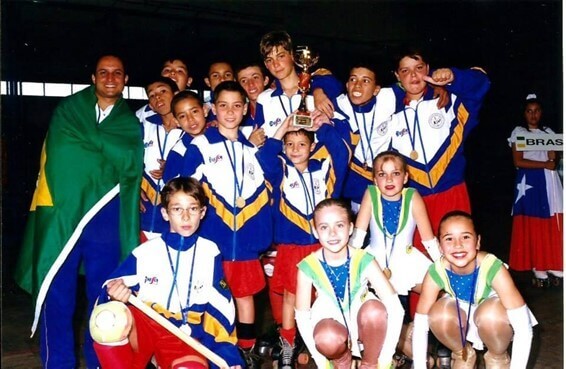 Selecção de patinadores gaúchos antes da participação de um torneio no Chile, com o técnico Fernando Louzada (Facebook Didi Zanini)